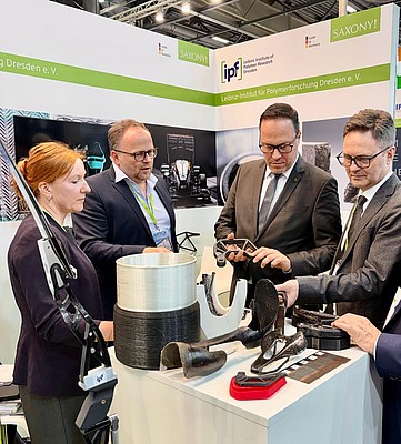 A team from the IPF is currently at JEC World in Paris at the Saxony joint booth organized by the Wirtschaftsförderung Sachsen GmbH. They are showcasing the institute’s expertise in functional reinforcement fibers, optimized lightweight structures, and sustainable construction materials.